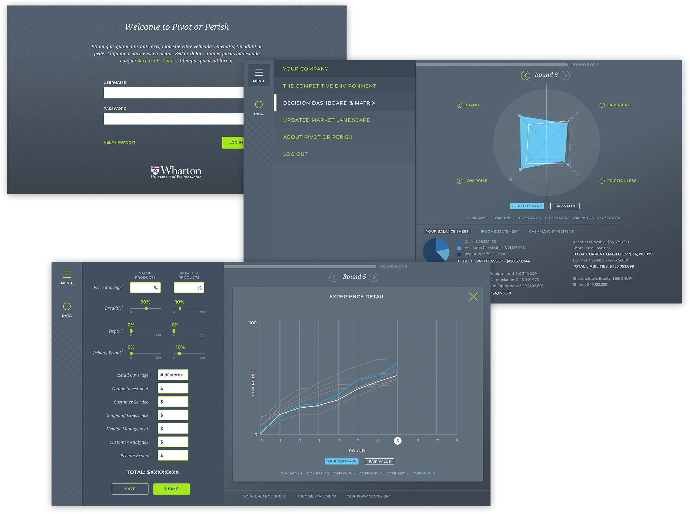 Since 2011, world-renowned scholar and author of The Shopping Revolution, Barbara Kahn, has taught a high-level marketing course at The Wharton School. With the release of her latest book, Backpack was brought in to develop an experience that allows her students to interact with the Success Matrix she outlines. Pivot or Perish is an educational game designed from the ground up to show how to gain a business edge in retail.